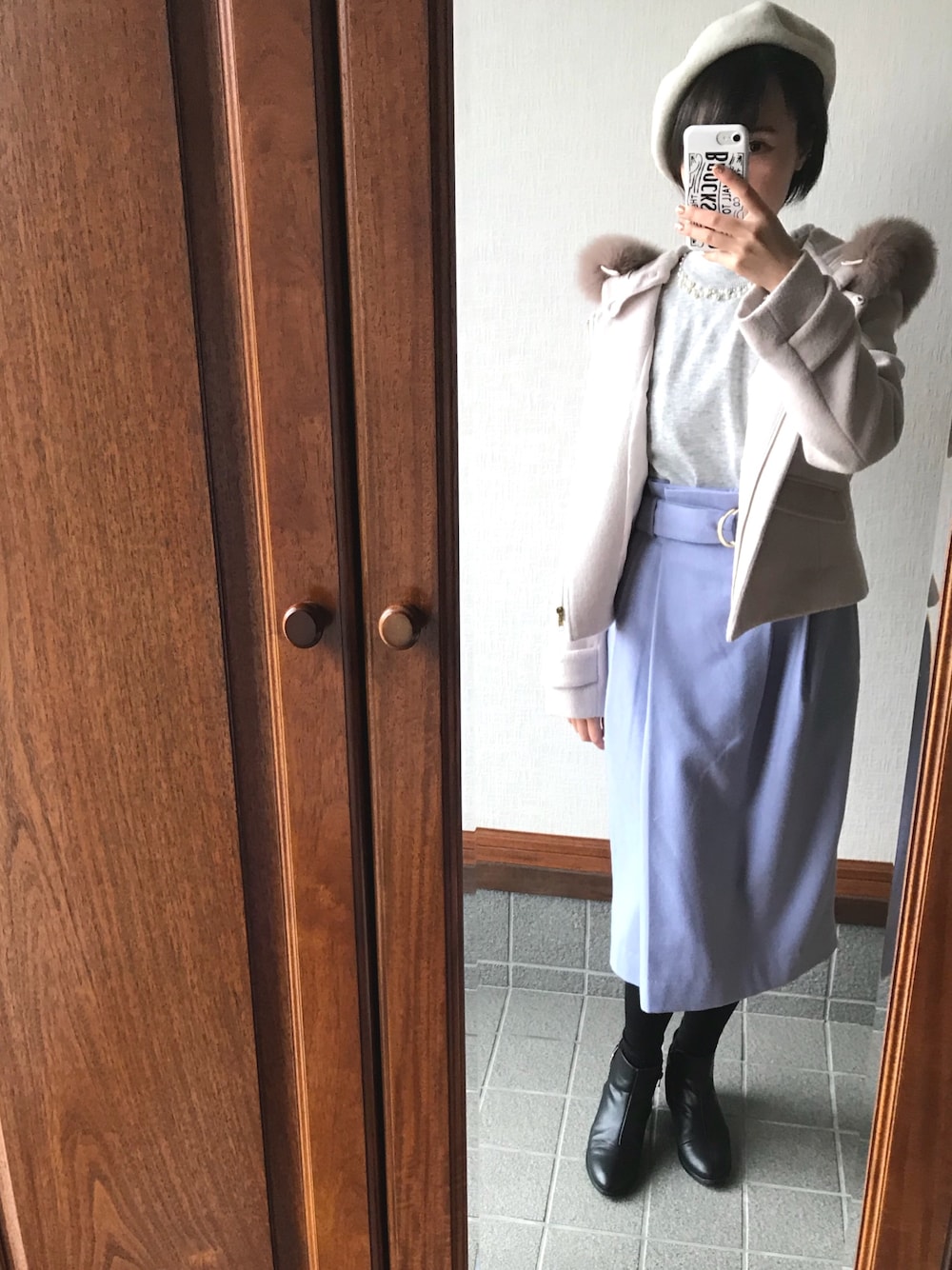 Techichiのスカート、25パーセントウール入りであったかい 半額でした〜〜 ちなみにコートもニットも帽子も半額で買い笑 色合いだけでもパステルで春らしく