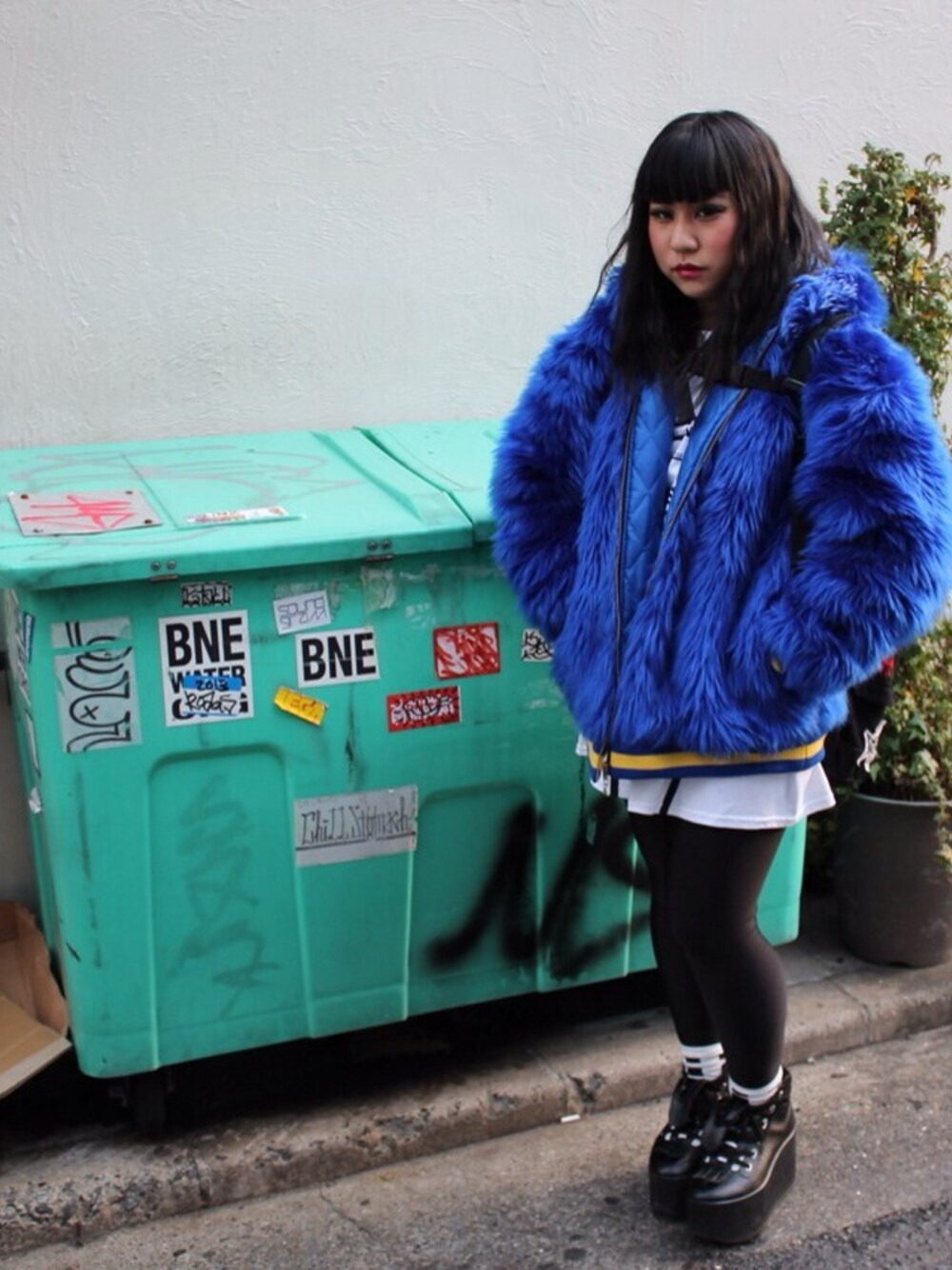 GIZAのブルーのファーブルゾンが 派手なので、インナーはnasir mazharの 白Tで少し抑えてみました😂🙏