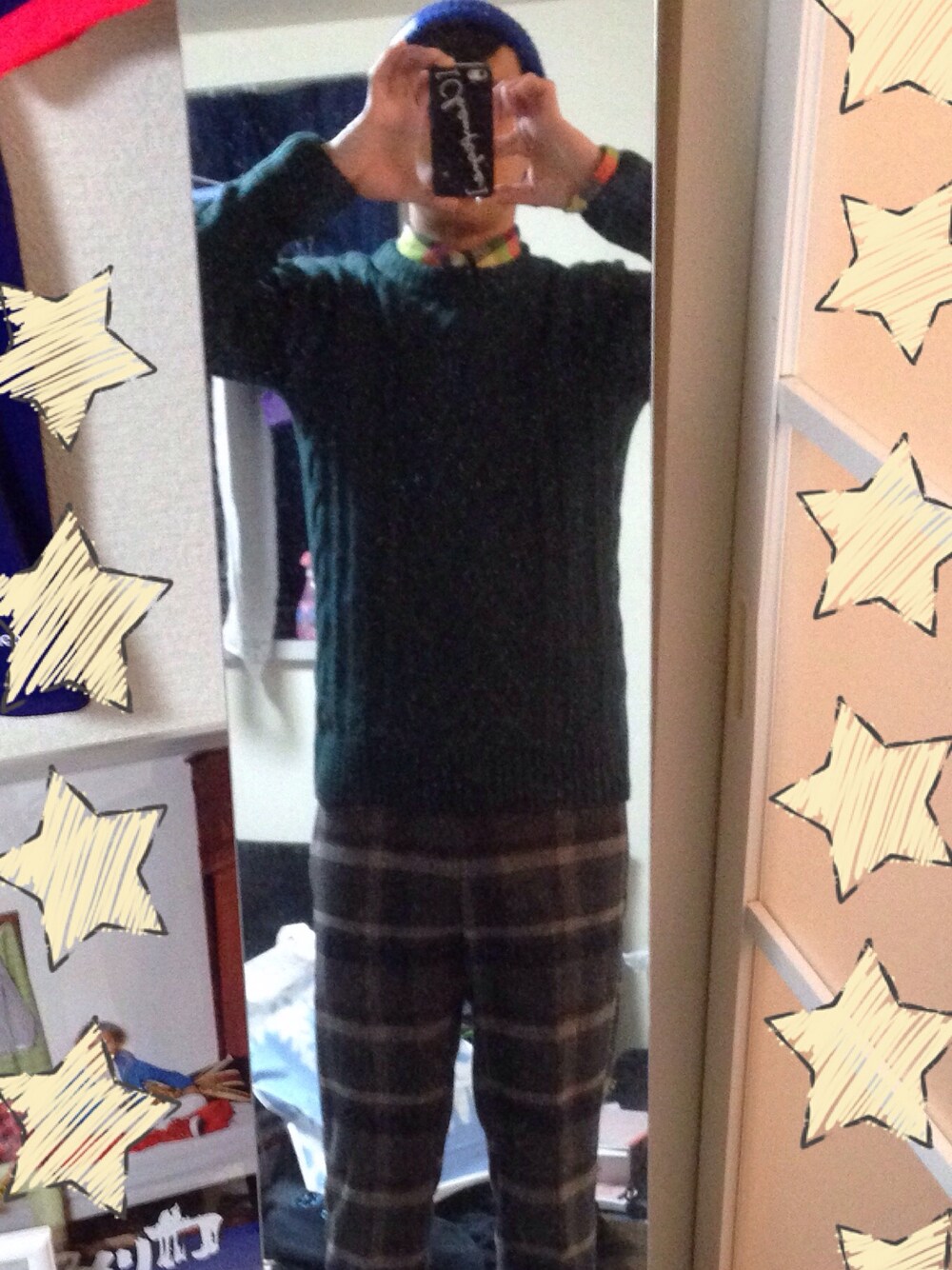 ライトオンで買ってきた、女性モノのセーターを早速着ました!サイズは問題ないかと。むむ。