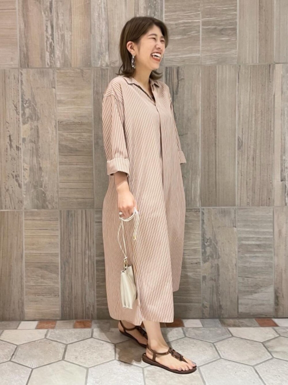 オーバーサイズのワンピースです。サンダルと合わせるとカジュアルにも着回せます。