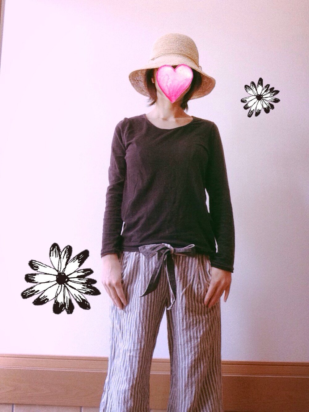 ずっと前に買った長袖Tだけど、サイズ感が気に入っている☆ たかが長袖T…されど長袖T…✳︎ トップス✳︎ INMERCANTO ストローハット✳︎ 無印良品