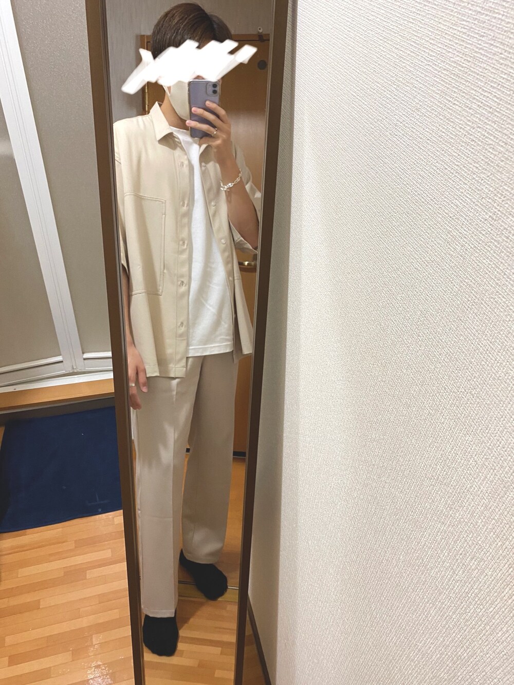 yusukeのシャツ/ブラウス「ブライトポプリン リラックス オーバーサイズ 鬼ステッチビッグWポケットレギュラーカラーCPOシャツ EMMA CLOTHES」を使ったコーディネート