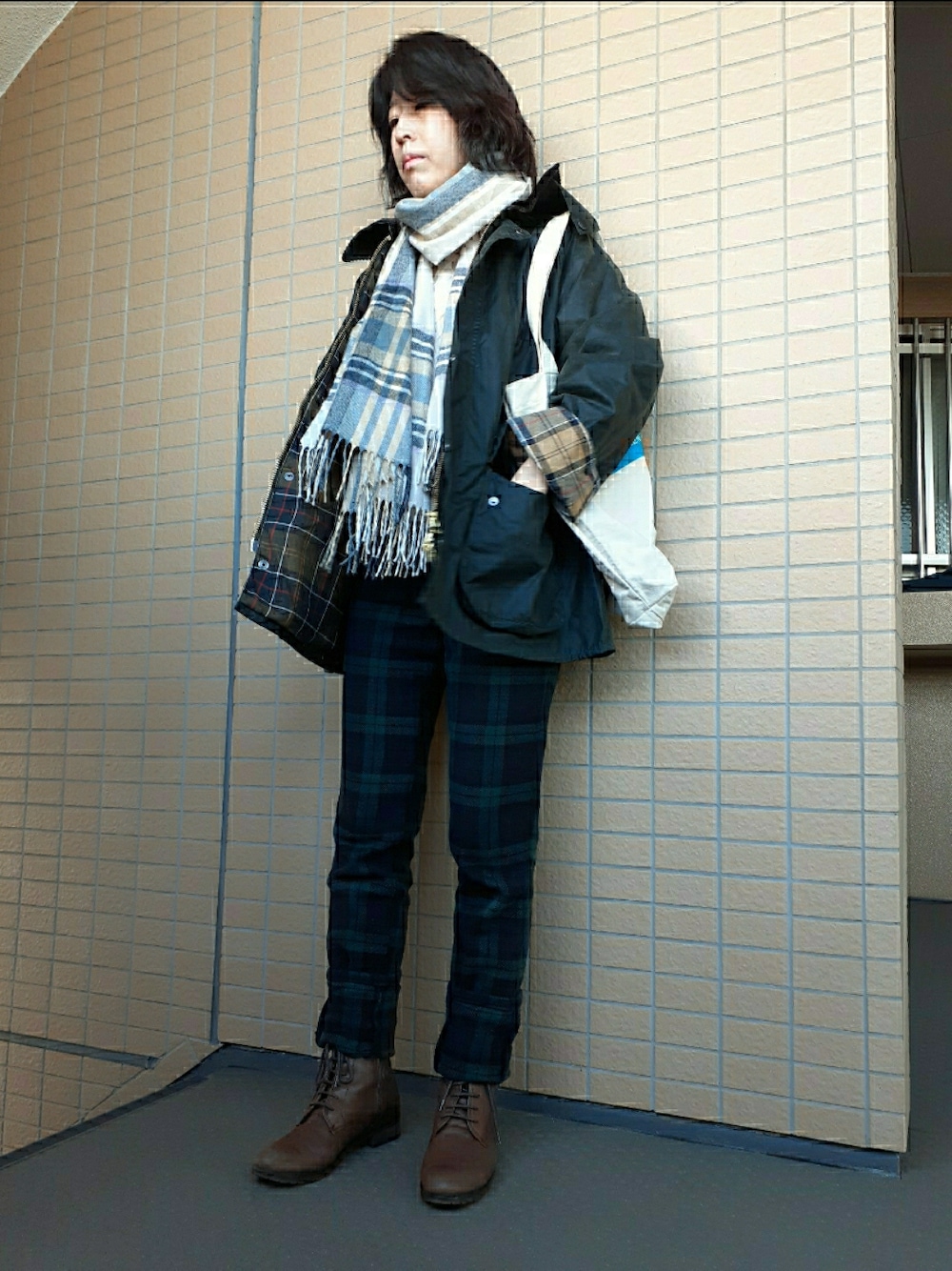 今日はFreadaが別注したBarbourのジャケットを使ったコーデです。チェックを多用しましたが、あんまり目立ってないですね。 Barbourのデザインはたくさんありますが、これはBEDALEという腰までの丈で、乗馬をする時に着用しやすい長さとなっています。そして私がこのFreadaの別注に惚れ込んだポイントは袖の裏地が左右違うということです!こんなことで散財するなんてクレイジーですかね?クレイジーパターンが大好きな私です(笑) こちら、オイルドコットン生地で作られているので、着用にはいろいろと注意が必要です。オイルがまわりの人やものに付くのを防ぐために電車、バスの乗車及び車の運転はNGとされています。となると!徒歩と自転車で行けるところしか着られない!ワンマイルウェア扱い。 自然のなかで着るために生まれた服なので仕方ないですかね。せっかく買ったので、今季いくつか着回しコーデ上げて行ければと思います。