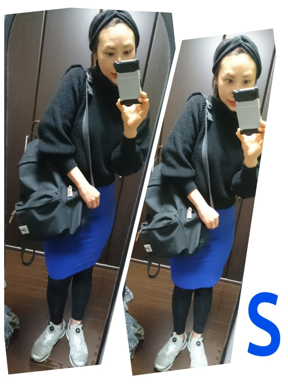 メタリックシルバーのリーボックスニーカー♥ 足元を明るくしてくれるお気に入りちゃんです♪ ロイブルのタイトスカートをキメキメってかんじにならないようゆる黒ニットとスニーカーで合わせました!