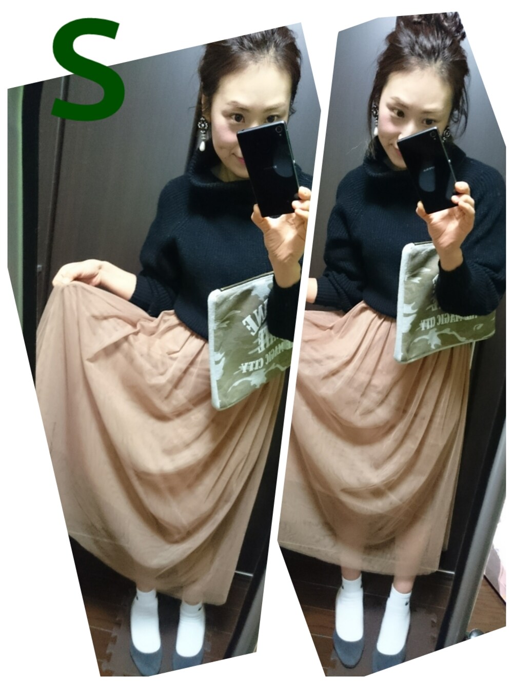 ゆるくおだんごにして、アングリッドのパールピアスをつけました。シアー感のあるチュールスカートをメインにフェミニンにコーディネートしました。