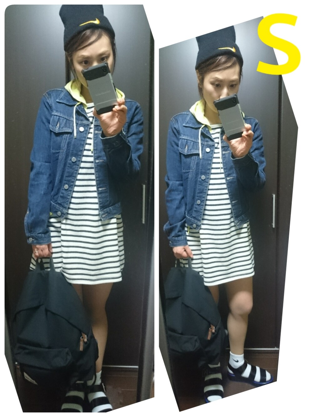 もうすぐ春なので明るい色の物に目がいきます♪ 特に黄色が気になる♥ 今日はパーカーと、ニットキャップのNIKEロゴを黄色で合わせました。 写真では暗く写ってしまいましたが明るい黄色なんです(^_^;) 黄色のスカートほしいなぁ。。。