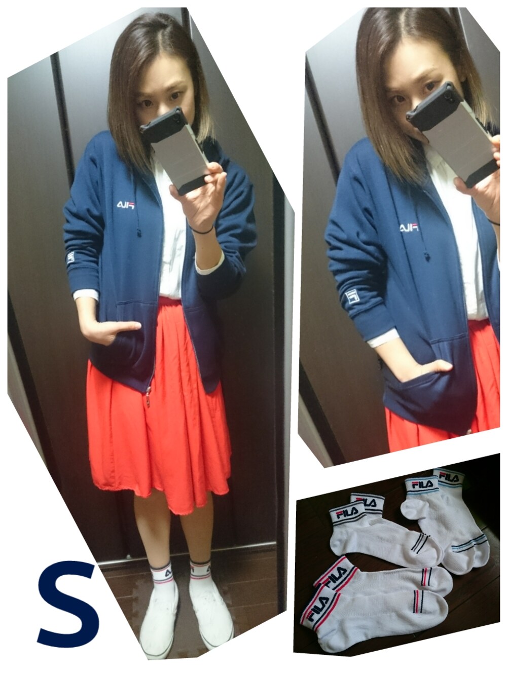 スポーツブランド好きです♥ 今日はFILAコーデ★ パーカーの下に白シャツをきてカジュアルななかにキチンと感を! スニーカーはKENZOとvansのコラボスリッポンです♪