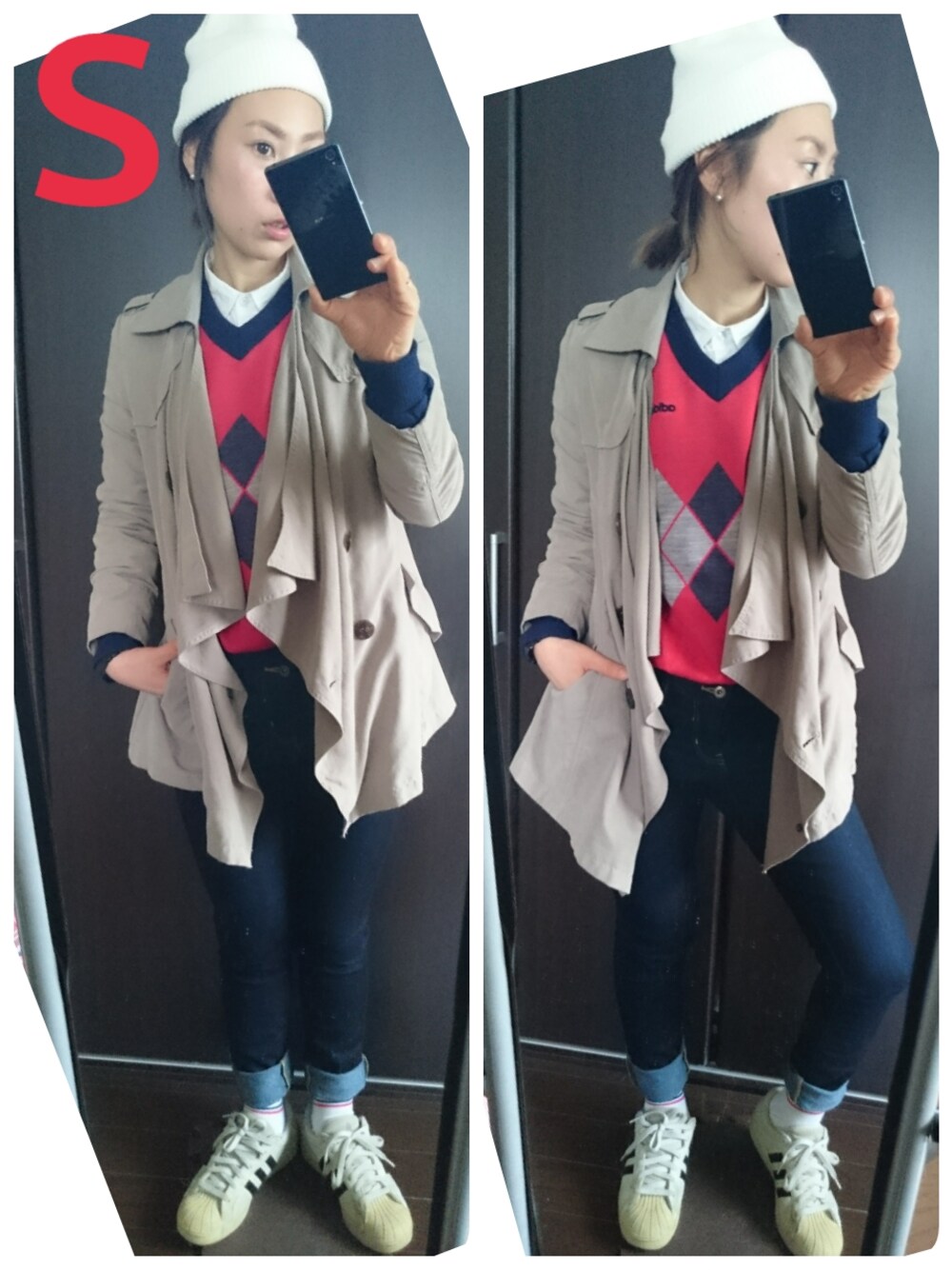 adidasのニットはmade in France★ 70年代のデッドストックです。 adidasのスーパースターとあわせて、グッドガールなスポーツスタイルにしてみました♪