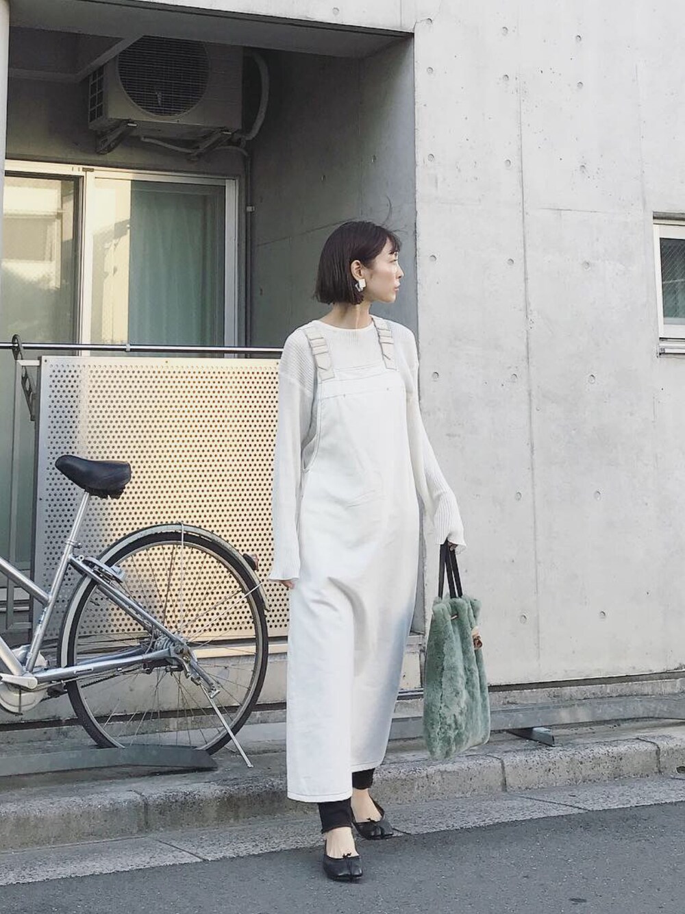 ホワイトコーデにお気に入りのタビバレエとムートントート*