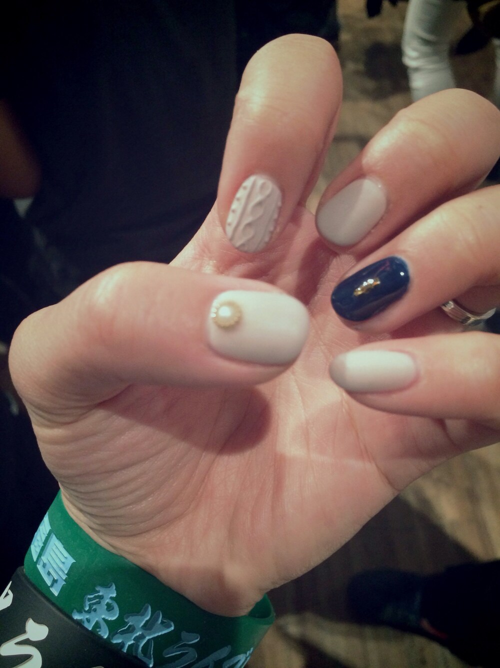 今日は新木場でMAD Ollieです 4本マットネイルで 1本ネイビー✖️スタッズ ニットネイルです