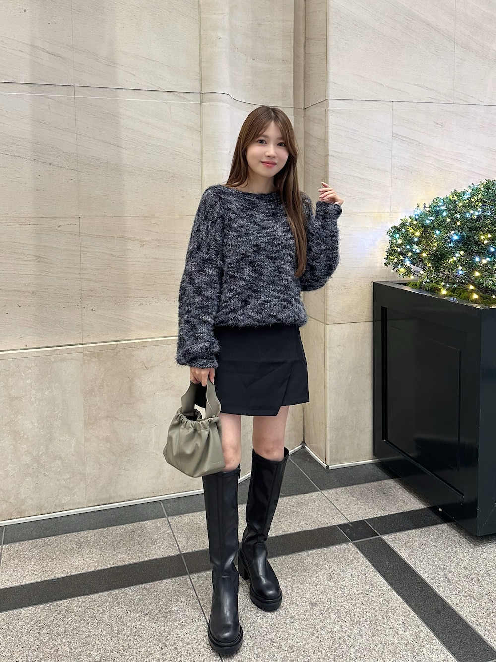 ミニ丈にロングブーツ合わせ大優勝!