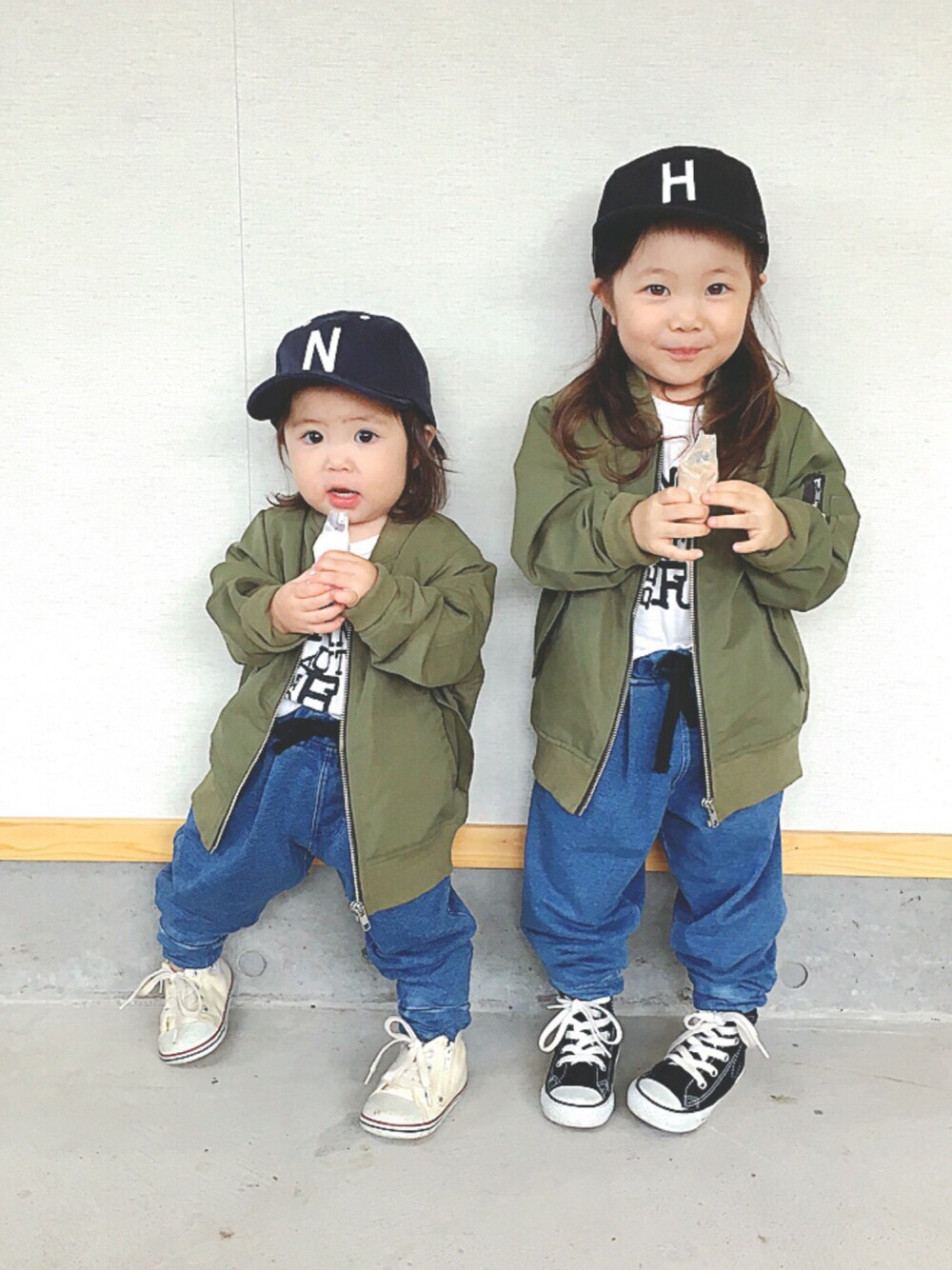 今日は、フェンシーズメンバー、soraちゃんのお誕生日💝 soraちゃん、お誕生日おめでとぉー🎉 soraちゃんのMA-1コーデがかっこよかったので、 うちもMA-1コーデにしてみたよー😆 でも、soraちゃんみたいにかっこよくきまらない😂 加工作りながら、soraちゃんの顔がすっごく小さいことにビックリ‼️ soraちゃんにとって、素敵な1年になりますように💝💝 MA-1は、前回お話ししたパパが買ってくれたアイテム✨ りんかはM、ふうちゃんはS着てます❤️ 見て下さって、ありがとうございます🙇 いいね♡save、フォロー、本当に嬉しいです❤️