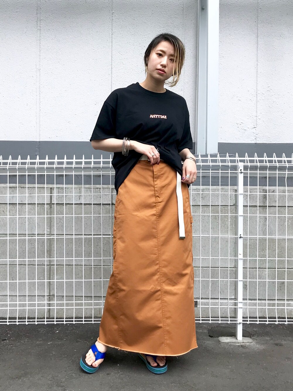 アレキサンダー・リー・チャン✖︎ciaopanic のTシャツはメンズのLサイズ❣️ ペインターマキシのスカートを合わせてビーサンで👣