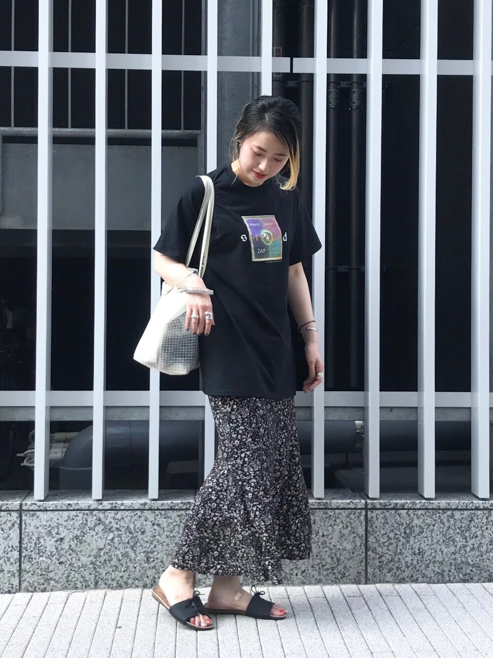 サラウンドのTシャツはメンズのM✌️ 花柄のスカートとあわせて〜