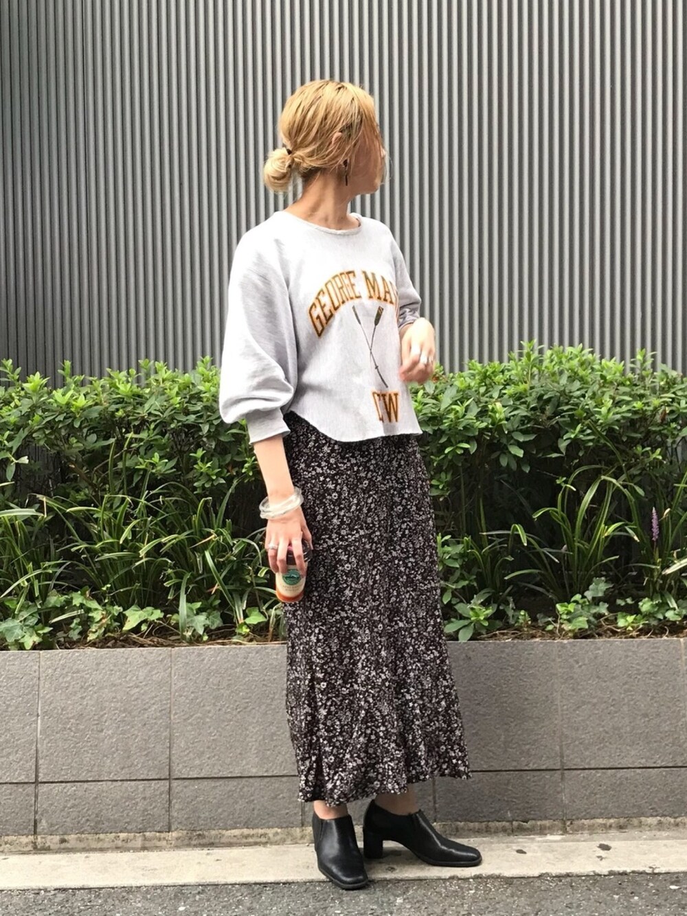 ジャンピンのリメイクのスウェットと花柄スカートっ