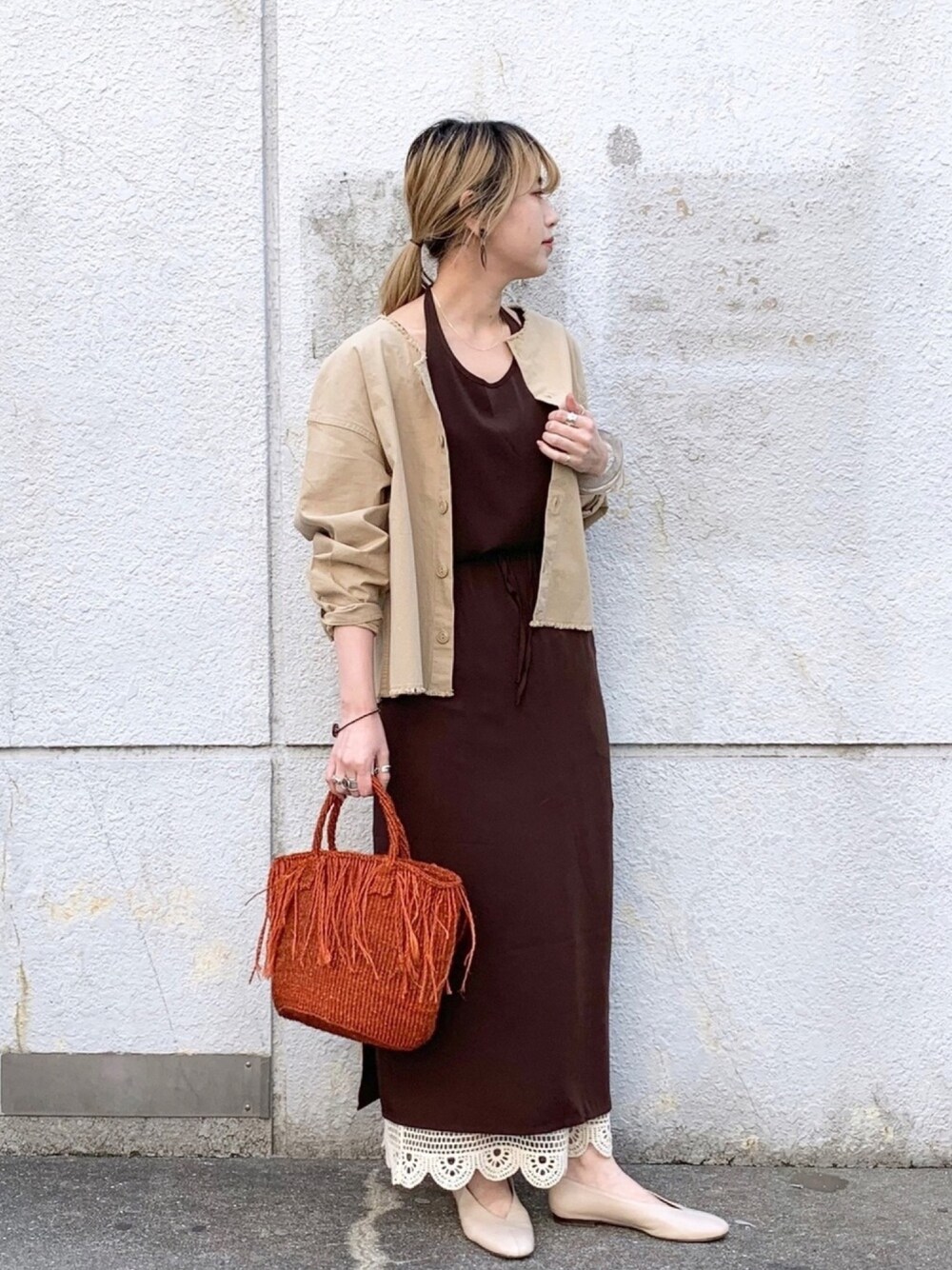 エプロンワンピースに柄編みスカートをレイヤードしました✌️