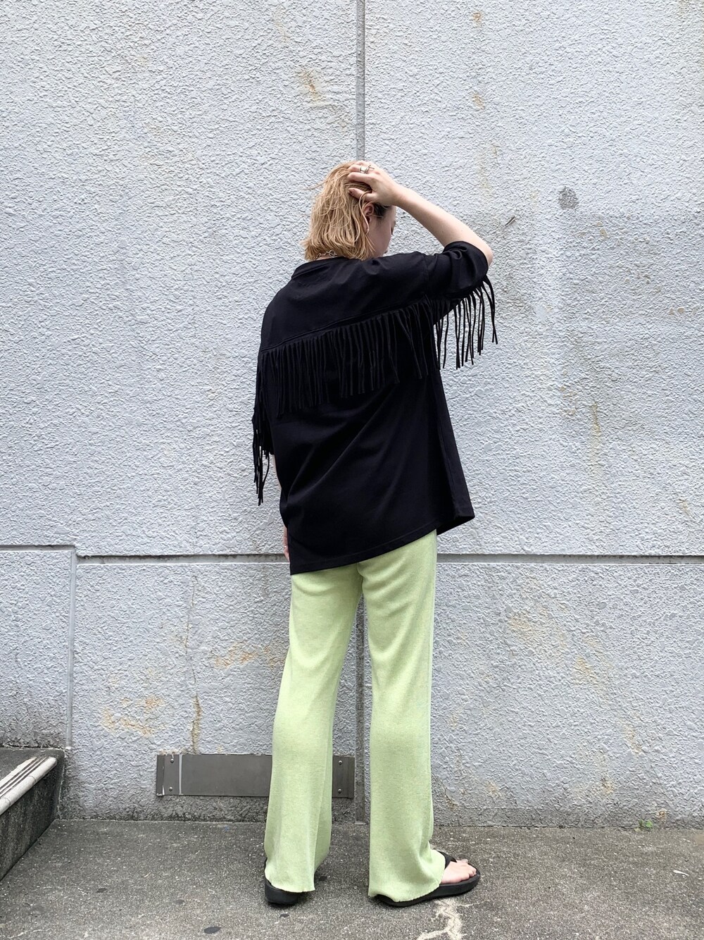 スーパーサンクスのフリンジTシャツです。 後ろがフリンジになっているのが可愛い♡ ビッグシルエットなので細身のパンツでも、あえてワイドなボトムと合わせても◎ 合わせたパンツはワンピースとセットのアイテムです。 こちらもとても履きやすいので是非チェックしてみて下さい^ ^