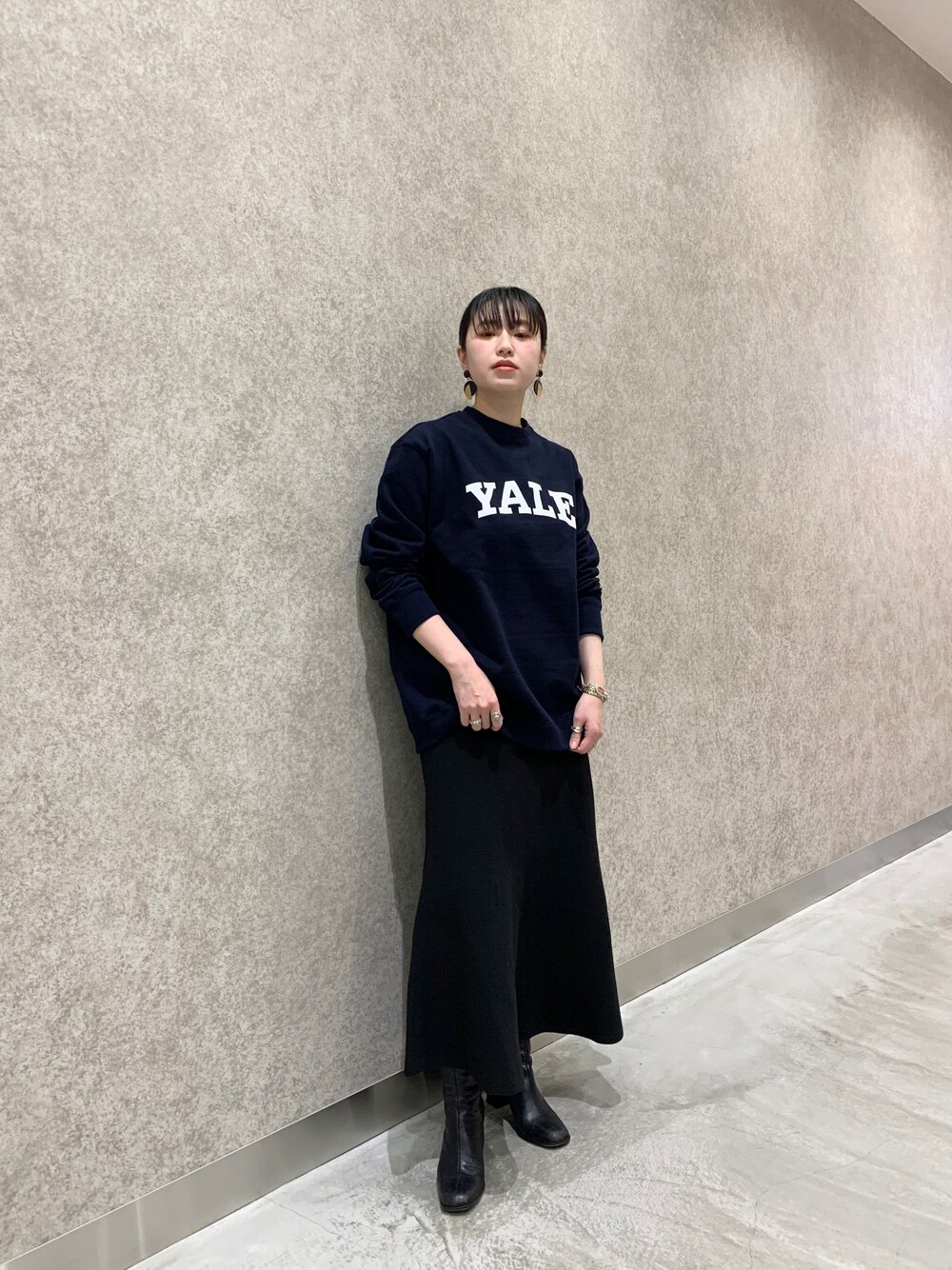 メンズのスウェットにマーメイドスカートを合わせて。 ▶︎ YALE Univ. アイビー カレッジロゴクルーネックスウェット サイズ感:メンズのMサイズ着用。 着丈は長めになるのでお尻は隠れます。 細身のボトムスなど合わせる時はこういうの重宝しますよね。 着心地:裏毛なのでさらっとしていて◎ ロングシーズン使えるのもいいですよね。 ▶︎ミラノリブマーメイドスカート サイズ感:お尻まわりはタイトなシルエットです。 膝から下に綺麗に広がるマーメイドシルエットは歩いた時の華やかさも◎ 着心地:ミラノリブと言って目の細かい生地で、ニットですが柔らかなスウェットのような肌触り。 ちくちくしないのでストレスフリーです。