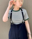 シンプルにリンガーボーダーTシャツとサスペンダー付きパンツ。 このパンツはインナー次第で幅広いコーディネートが楽しめるのでついつい選んじゃいますね。 ▶︎リブリンガーボーダーTシャツ サイズ感 ややタイトなサイズ感ですが、お袖はゆとりがあるので二の腕気にされてる方にぜひオススメしたいです、、!! ぴちっとしすぎないので、女性らしさの中に程良くカジュアル感があって◎ 着心地 リブなので伸縮性があり生地も柔らかいのでとても着心地いいです。 ▶︎サスペンダー付きワイドパンツ サイズ感 158cmで靴に乗っかる丈感ですね。 胸下くらいまであげて着るのが可愛いですよ。 ワイドなシルエットなのでボディラインを拾いにくいのもカバー力があって◎ 着心地 程良く肉厚な生地感で、さらっとしていて落ち感があるので綺麗な印象で合わせて頂けます。 サスペンダーのデザインも留め具にレザーを使っていたりと凝ったデザインなのもポイントです。 ▶︎サイドゴアブーツ サイズ感 足のサイズ24.5cmで38着用。 程よいボリューム感で足元に存在感が出ます。 太めのヒールで安定感も◎