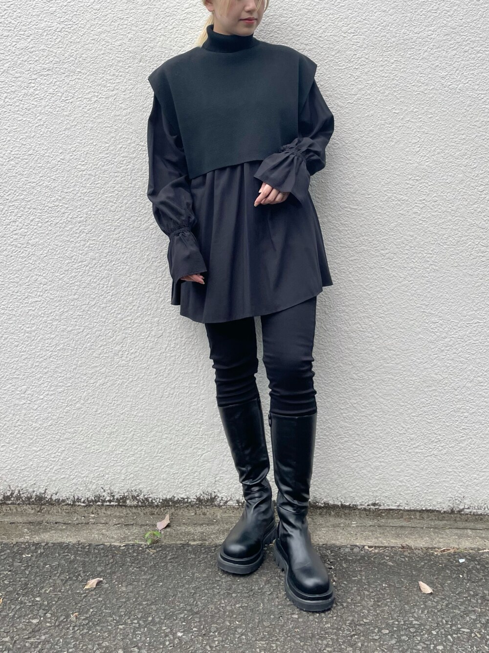 ▶︎ エコリッチショートベスト サイズ感 ショート丈でレイヤードスタイルもバランスが取りやすいです。 コンパクトなサイズ感なのでまとまりがあります。 着心地 さらっとした薄手の素材でレイヤードもしやすいです。 ロンTやシャツブラウスは勿論、ニットに重ねても野暮ったく見えないので幅広いコーディネートで活躍するアイテムです◎ ▶︎ キャンディースリーブブラウス サイズ感 見頃はゆったり、着丈はお尻が隠れる長さです。 着丈は長めですが落ち感があるのですっきりしたシルエットに。 袖口のキャンディスリーブが女性らしい印象ですね。 着心地 てろっと柔らかく、リラックス感のある素材を使用しているので着心地良いです。 今回はボタンを後ろ側で着てみました。 コーディネートに合わせて前後変えても良さそうです◎ ▶︎ ハイウエストスキニーデニムパンツ サイズ感 Mサイズ着用です。 ハイウエストで足長効果抜群です◎ 着心地 ストレッチが効いているのでとても穿きやすいです。 シンプルなので1枚では勿論、ブーツインやワンピースなどに重ねて使っても良さそうです。 ▶︎ トラックソールロングブーツ サイズ感 普段足のサイズ24.5で24.5を着用。 ふくらはぎ部分は程良くタイトなのでスッキリ見えします。(でもスキニーで合わせられるくらいの余裕はあります) はき心地 見た目のボリューム以上に軽くて安定感があるので長時間はいてても疲れにくいです◎ ロングブーツを履いたことのない方に是非試して欲しいアイテムです!