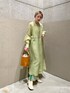 シアーな2wayワンピースで春らしさ全開コーデ! グリーンのワントーンで合わせてみました♪ ▶︎ 2WAYシアーワンピース サイズ感 シアーの透け感が可愛いワンピースは前後2WAYです。羽織としてもお使い頂けます。 少しシャリ感のある生地でふんわりとしたシルエットに。 ボディラインを拾わないので安心感も◎ 着心地 さらっとしていて肌に引っ付くような生地ではないので軽さがあります。 前開きで羽織りでも使えるのでプリントTなどカジュアルアイテムとの相性も抜群です。 ▶︎ ジャガードニットフレアパンツ サイズ感 ウエストはゴム仕様のイージーパンツ。 フレアシルエットが綺麗で凄く様になります◎ ウエスト、太もも周りはややタイトなので私は着丈長めのアイテムで合わせたいです、、笑 着心地 柔らかいニット生地で履き心地抜群◎ 一枚でもレイヤードでも活躍するので通年通して使えます。 ▶︎ キャンバス巾着セットボックスバッグ サイズ感 マチがしっかりあるので自立します。 キャンバスの巾着がついていて、一緒に使ってもよし、別々で使ってもよし、のコーディネートに合わせて使えるバッグです◎ 取り外し可能のショルダー付きなのも嬉しいですね! ▶︎ センターステッチショートブーツ サイズ感 足のサイズ24.5cmで39を着用。 細身のシルエットでスッキリ見えますが、ぴたっと吸い付くようなホールド感はとても履き心地がいいです。 ヒールも太めで安定感があり歩きやすいです◎