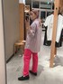 ピンクコーデ② メンズアイテムを使ったコーディネート。 ▶︎ストライプシャツ サイズ感 メンズのMサイズ着用。 着丈は長くなりますが袖はまくったらOK! 程よいビッグシルエットになります◎ 着心地 さらっとしていて着心地いいです。 着丈長くなるので体型カバーもできるのは嬉しいポイントです。 ▶︎カラーベイカーパンツ サイズ感 158cmでこちらはSサイズ着用。 丈感ジャストですね。 すとんとしたシルエットはスタイル良く見せてくれます。 着心地 薄手のジャージ??みたいな生地感で、少しストレッチが効いています。 落ち感があるので綺麗に見せてくれますよ◎