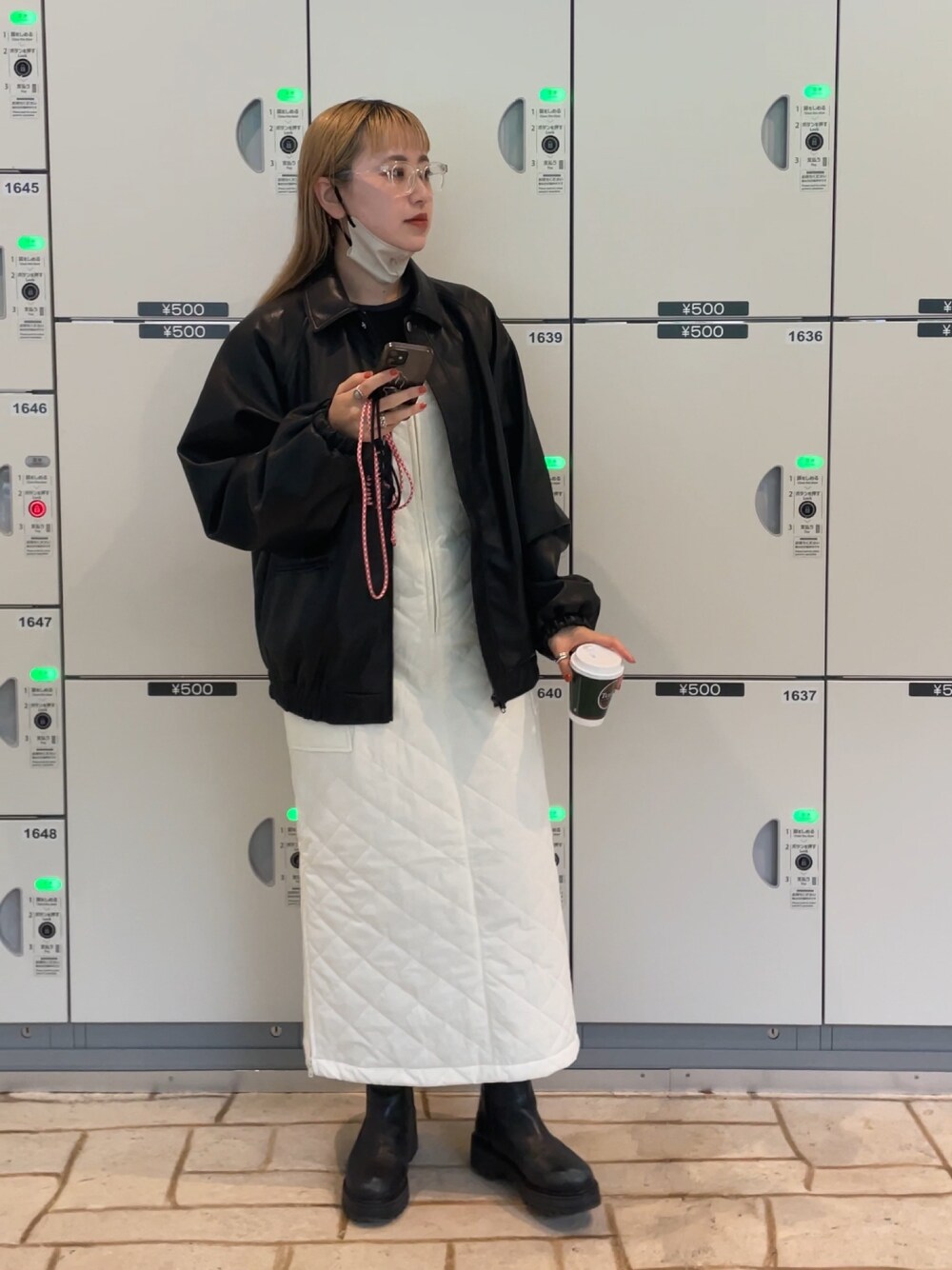 キルティングジャンスカにレザージャケットを合わせてみました^ ^ 骨格:ストレート ▶︎アウター Mサイズ着用。 ユニセックスアイテムなのでゆったり大きめのサイズ感です。 冬は中に着込めるのでこれくらいのサイズがちょうど良いです◎ 生地は柔らかく軽いので着心地抜群!お値段以上のクオリティです、、!!! ▶︎ジャンスカ キルティングのジャンスカって新鮮! 肩ベルトで長さ調節可能ですし、裾にサイドジップもついているのでパンツレイヤードしても足捌き良いです◎ ▶︎インナー 後ろリボンが可愛いインナー。 可愛いデザインだけど生地がカジュアルなのでバランス良いですね。