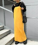 一枚は持っておきたいキャミワンピとトレンドのバラクラバを合わせてみました^ ^ 骨格:ストレート ▶︎キャミワンピ 肩紐で丈が調節可能なのと、身幅も背中の紐で調節できるので幅広い体型の方に着て頂けるワンピースです◎ すとんと落ちるシルエットは程良くゆとりがあり、ボディラインを拾わないのでとても着やすいです! 少し厚みのあるスウェードライクな生地で季節感もあります◎ ▶︎インナー パワショルデザインのロンTです。 肘から先はすっきり細身なのでメリハリがあって形綺麗です◎ ▶︎バラクラバ、アームウォーマー バラクラバはフードとして合わせています。 首元にボタンがあるので調節可能です。 柔らかく肌触りもいいのでチクチクしません。