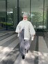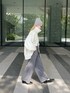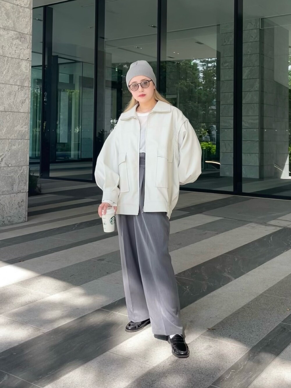 淡いトーンでコーディネート♪ 骨格:ストレート ▶︎アウター 袖が取り外せるマルチウェイジャケット。 ベストとしても使えるので長い期間使えるアイテムです! 袖ボリュームになっているのでレザーですがハード過ぎないデザインで女性が着やすい形になっています◎ 襟を立ててスタンドカラーで着ても可愛いです◎ ▶︎パンツ ウエストが後ろゴムになっているハイウエストパンツ。 ベルトループもついています◎ すとんと落ちる生地感とシルエットはとても綺麗です。