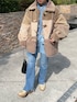 エシンタコーデ♪ 骨格:ストレート ▶︎アウター ファーのダッフルコートってまた雰囲気変わりますね〜! 襟はスタンドカラーで着ると今年っぽいし暖かいです◎ 保温力もあるので沢山着込まなくてもぽかぽかです。 ユニセックスアイテムなので少し大きめのサイズ感。男性にもオススメ♪ ▶︎シャツ こちらもエシンタの切替えシャツ。 着丈はお尻がすっぽり隠れる長さでゆったりしたサイズ感。 お袖はカットオフされていて袖口広めです。 女性ならロールアップして手首見せて着るとバランス良く着れますよ◎ ▶︎デニム 158cmでMサイズ着用。 広がり過ぎないシルエットのフレアデニムはとても形が綺麗です、、!! やり過ぎてないデザインでながく使えるアイテムです◎ 生地も柔らかくデニムですが凄く履きやすいです!