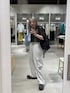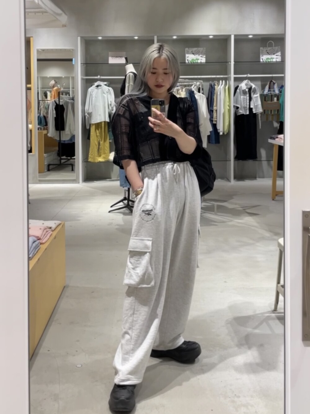 リアルバイコーデ♪ 骨格:ストレート ▶︎トップス クロップド丈のシアーシャツ。 チェック柄なのですけすけし過ぎず着やすいです◎ 開襟シャツで首元もすっきり。 ▶︎パンツ 158cmでMサイズ着用。 ちょびっと長めなので、裾を絞らないで履く時は厚底はくようにしてます。 ウエストゴムのイージーパンツ!めちゃくちゃ履きやすいです◎
