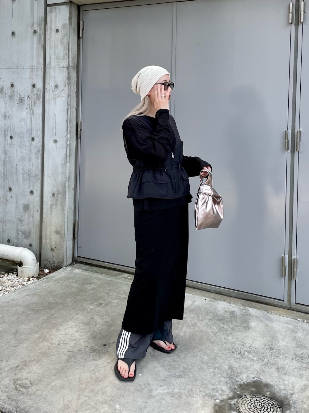 レイヤードスタイル♪ 骨格:ストレート シアーのベストをレイヤードしてみました。 ウエストを絞ってギャザーにしても可愛いです◎ フロントジップなのもポイントです♪可愛い!