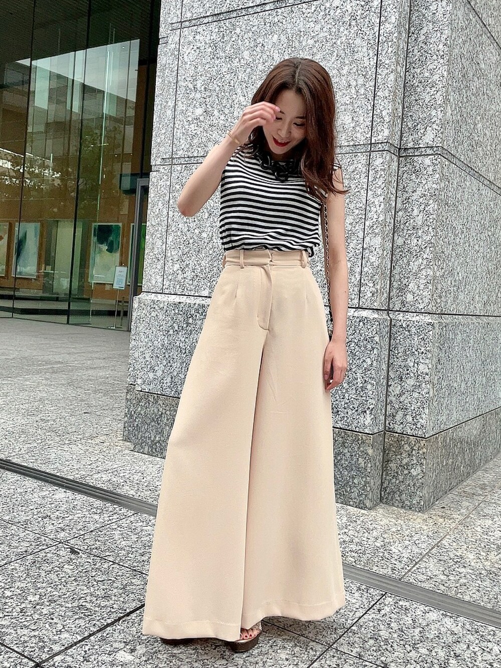 ボーダーがカジュアルになりすぎないように ワイドパンツで綺麗めにしました😊