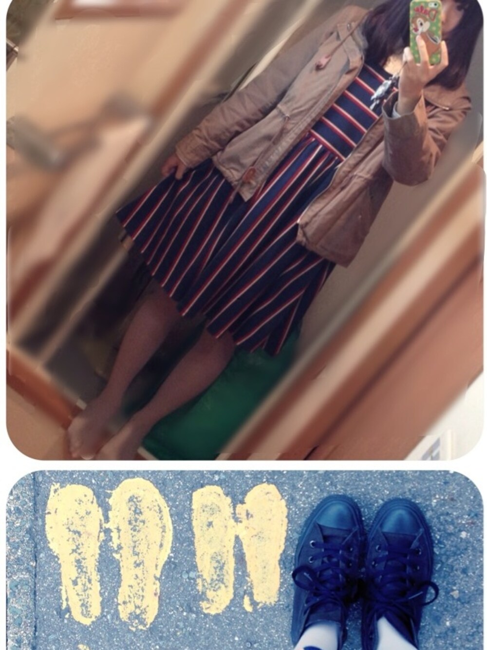 ネイビーなワンピに グレーのタイツを合わせております あまりに寒すぎるのでもう羽織りました ミリタリジャケット氏を どのお店で買ったか忘れました PARCOのどっかです( ق ) 実は中にヒートテックも着ました 末端冷え症なので指先冷え冷えです スニーカー酷使しすぎたから 靴探しの旅に!でる!