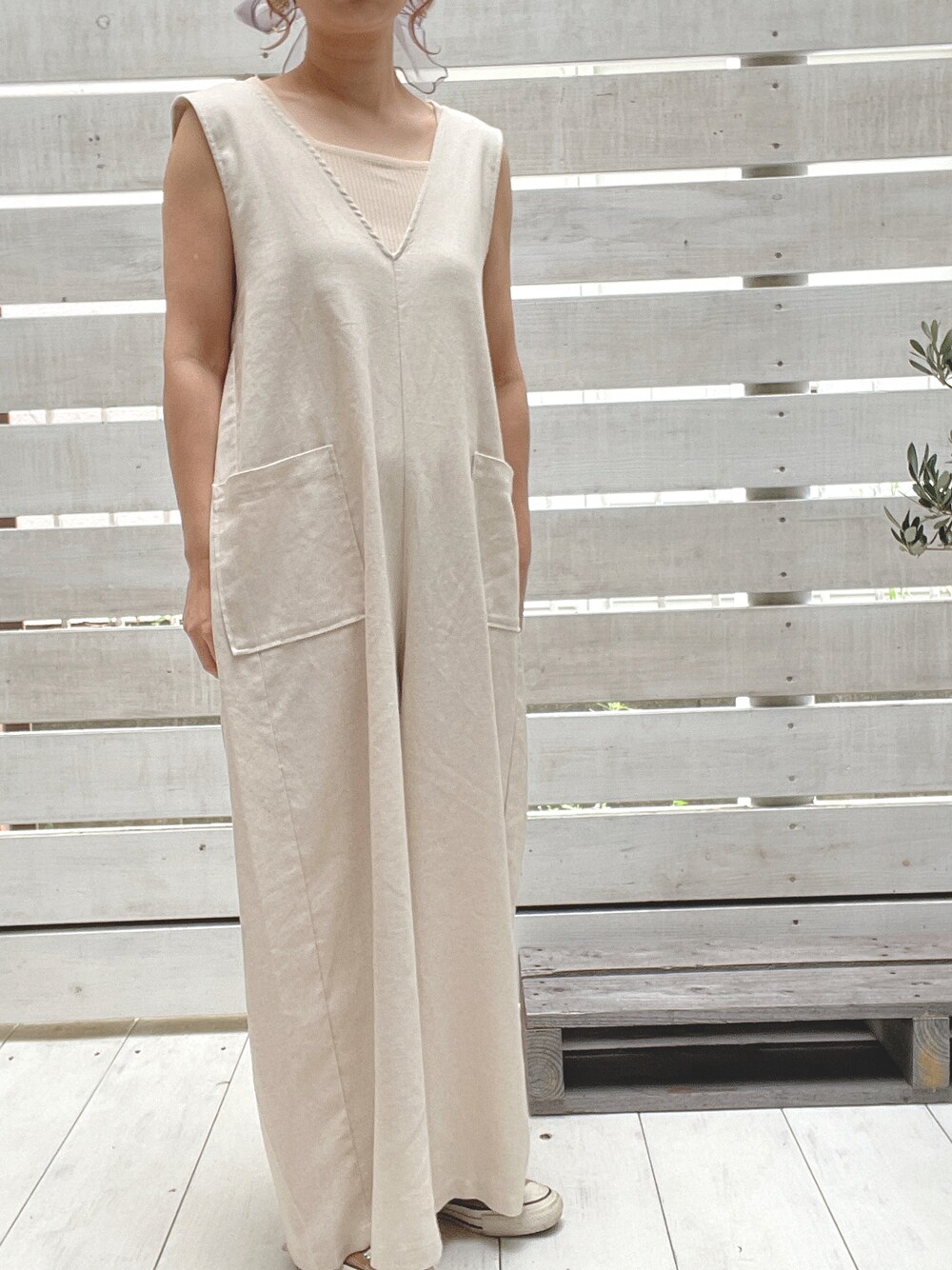 ノースリーブとサロペット合わせが可愛い💕