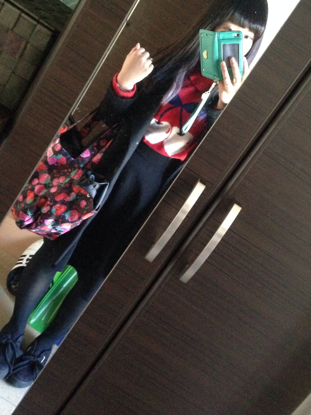 Sara♡のニット/セーター「CHERRY TURTLENECK KNIT TOPS」を使ったコーディネート