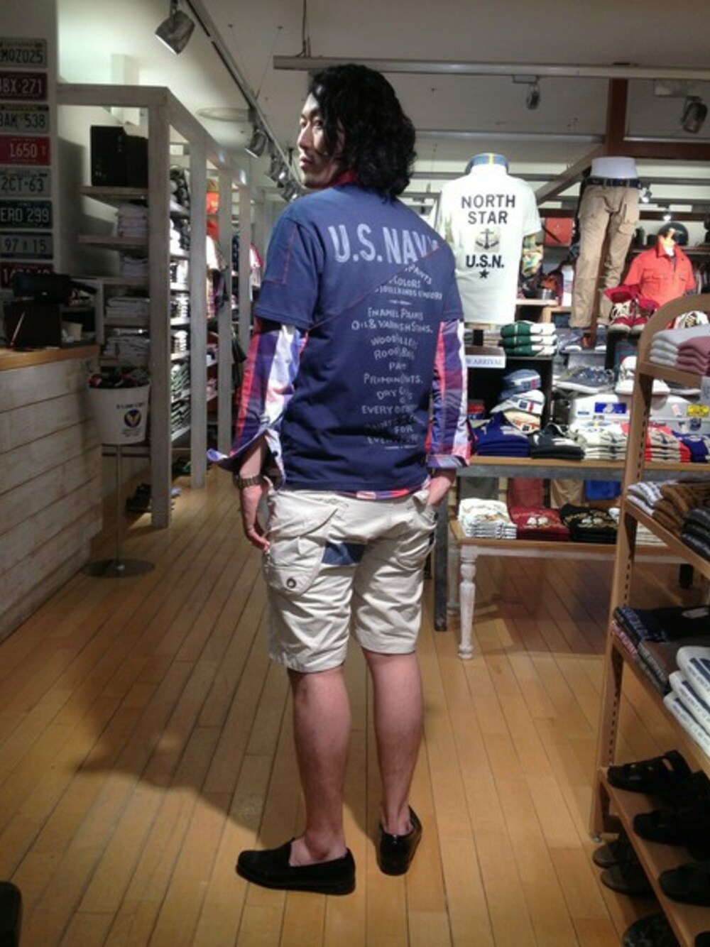 マリーンショーツにネイビーTのミリタリーコーディネートです。
