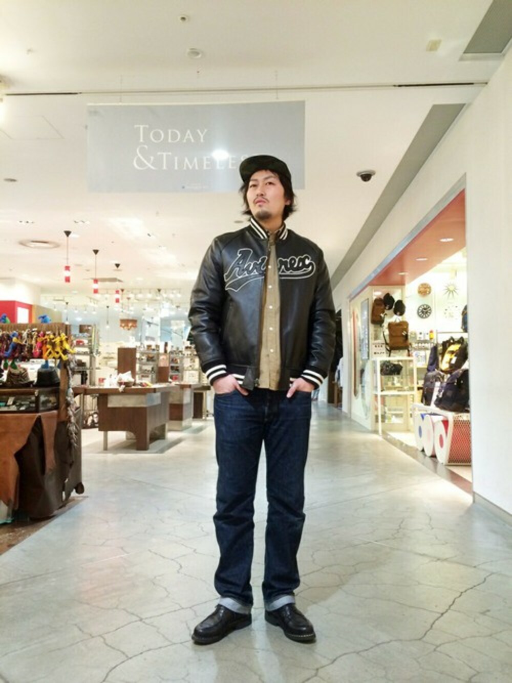 Mr.nakamuraのスタジャン「avirex/アヴィレックス/メンズ/COW ZIP UP STADIUM JACKET/カウ ジップアップ スタジアムジャケット」を使ったコーディネート
