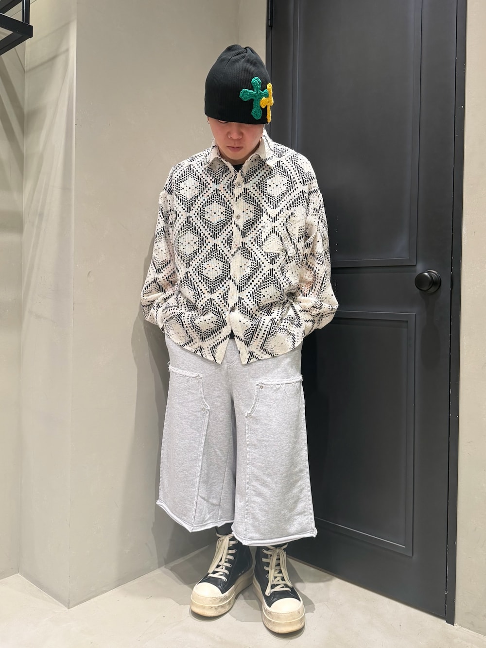 【Bomnivoreスウェットショーツ】 Bomnivoreのスウェットショーツを使ったコーデです。 シャツ/Bomnivore(L)ゆったり ショーツ/Bomnivore(L)ゆったり