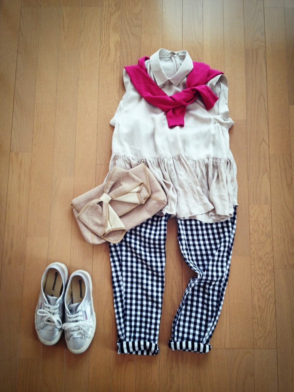 tops/URBAN RESARCH cardigan/UNIQLO pants/URBAN RESARCH shoes/SPERGA(シルバー) bag/不明