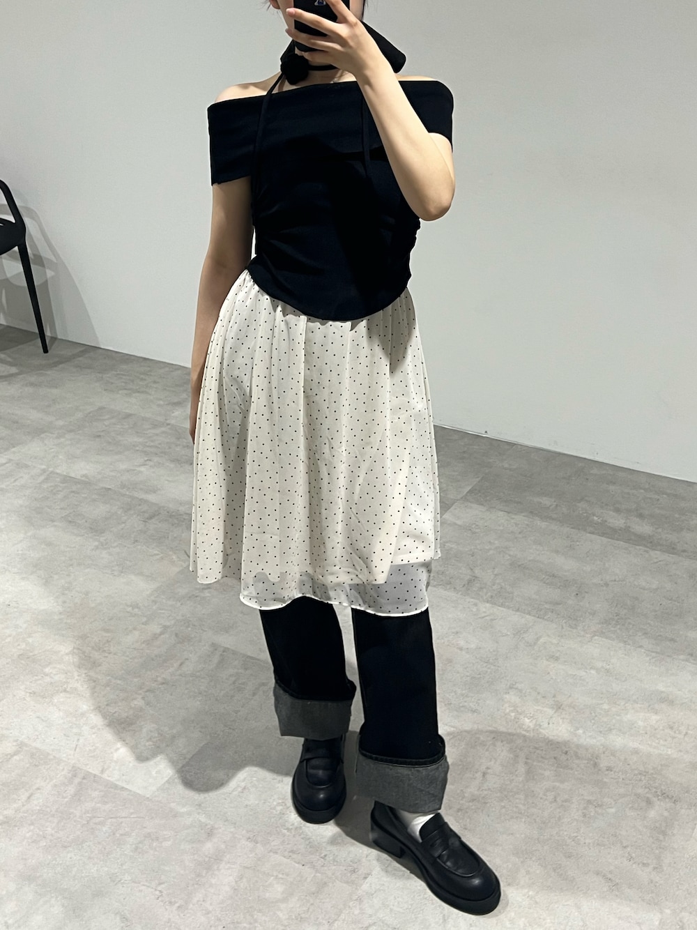 さき(GIUNON)のTシャツ/カットソー「flower tie set off shoulder / フラワータイセットオフショルダー」を使ったコーディネート