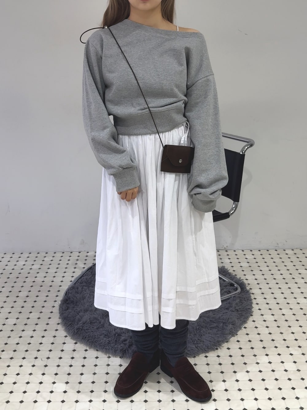 さき(GIUNON)のスウェット「2way off shoulder sweat shirt / 2way オフショルダースウェットシャツ」を使ったコーディネート