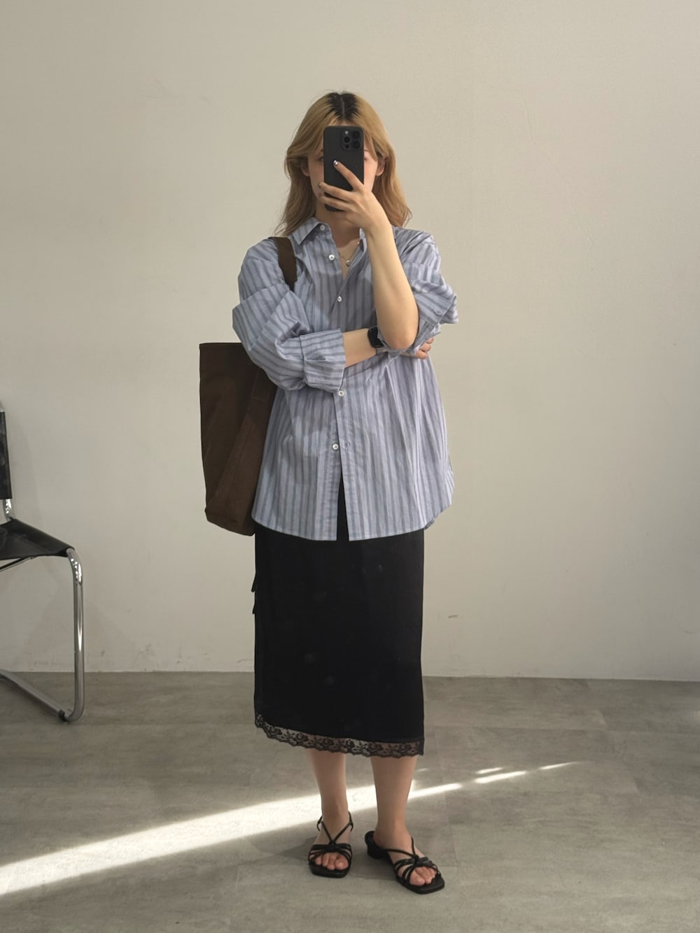 さき(GIUNON)のシャツ/ブラウス「2way embroidery stripe shirts / 2way エンブロイダリーストライプシャツ」を使ったコーディネート
