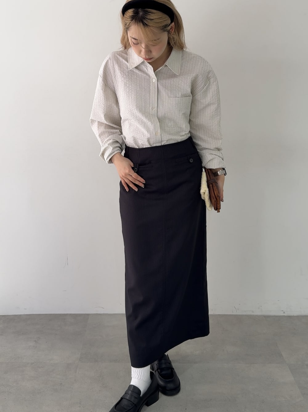 さき(GIUNON)のシャツ/ブラウス「2way embroidery stripe shirts / 2way エンブロイダリーストライプシャツ」を使ったコーディネート