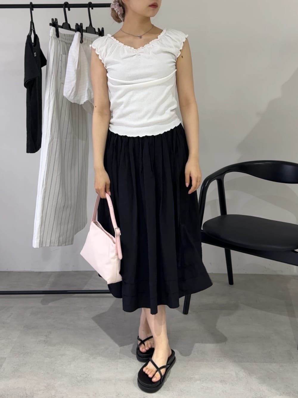 さき(GIUNON)のTシャツ/カットソー「hem mellow crinkled t-shirt / ヘムメロウクリンクルTシャツ」を使ったコーディネート