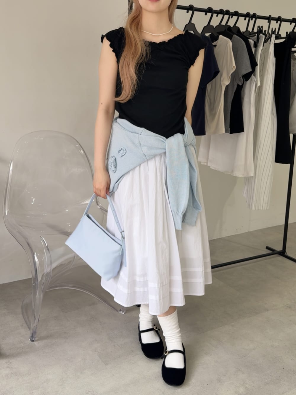 さき(GIUNON)のTシャツ/カットソー「hem mellow crinkled t-shirt / ヘムメロウクリンクルTシャツ」を使ったコーディネート