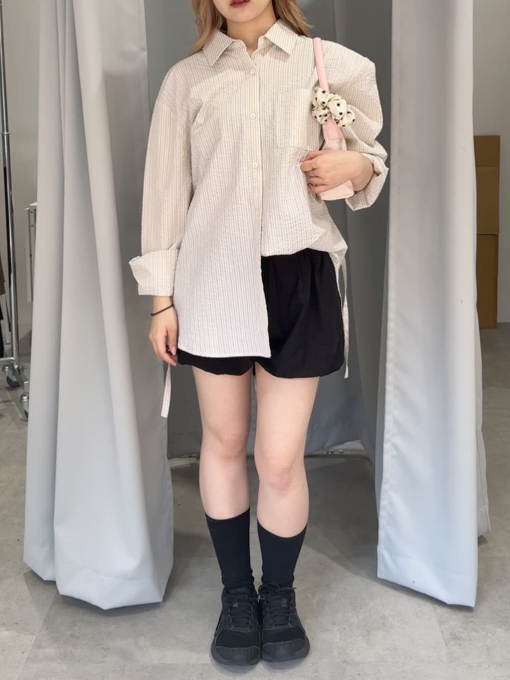 さき(GIUNON)のシャツ/ブラウス「2way embroidery stripe shirts / 2way エンブロイダリーストライプシャツ」を使ったコーディネート
