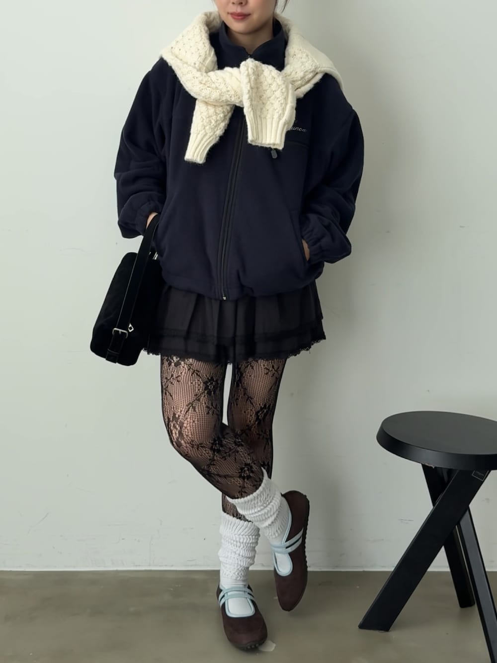 さき(GIUNON)のブルゾン「drawstring fleece zip-up jacket / ドロストフリースジップアップジャケット」を使ったコーディネート