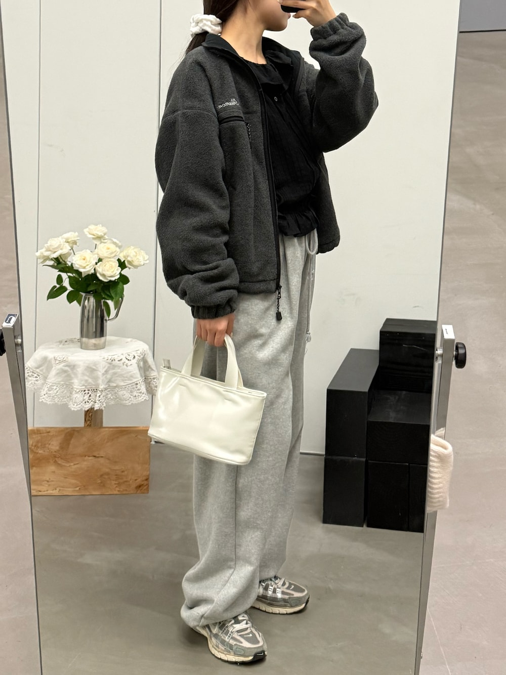 さき(GIUNON)のブルゾン「drawstring fleece zip-up jacket / ドロストフリースジップアップジャケット」を使ったコーディネート