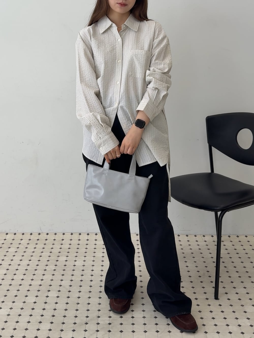 さき(GIUNON)のシャツ/ブラウス「2way embroidery stripe shirts / 2way エンブロイダリーストライプシャツ」を使ったコーディネート
